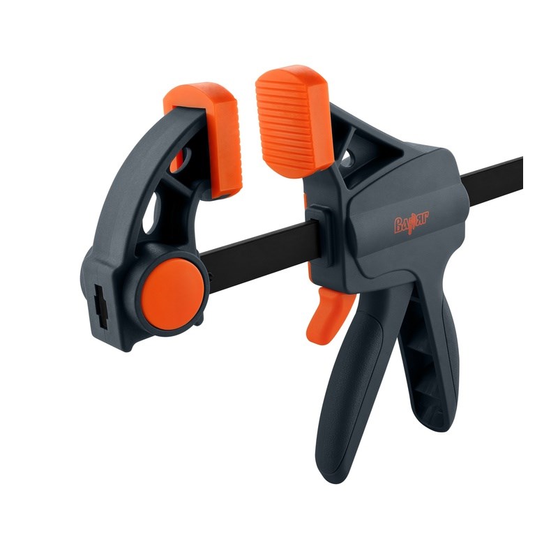 Используется для быстрой фиксации деталей при выполнении столярных, слесарных и других работ. Удобный рычажный механизм позволяет работать одной рукой. Глубина захвата: 63 мм. Размер защитных накладок: 40х30 мм. Диапазон работы: сжатие: 0-150 мм, растяжение: 154-340 мм. Сжимающая сила: 80 кг.
