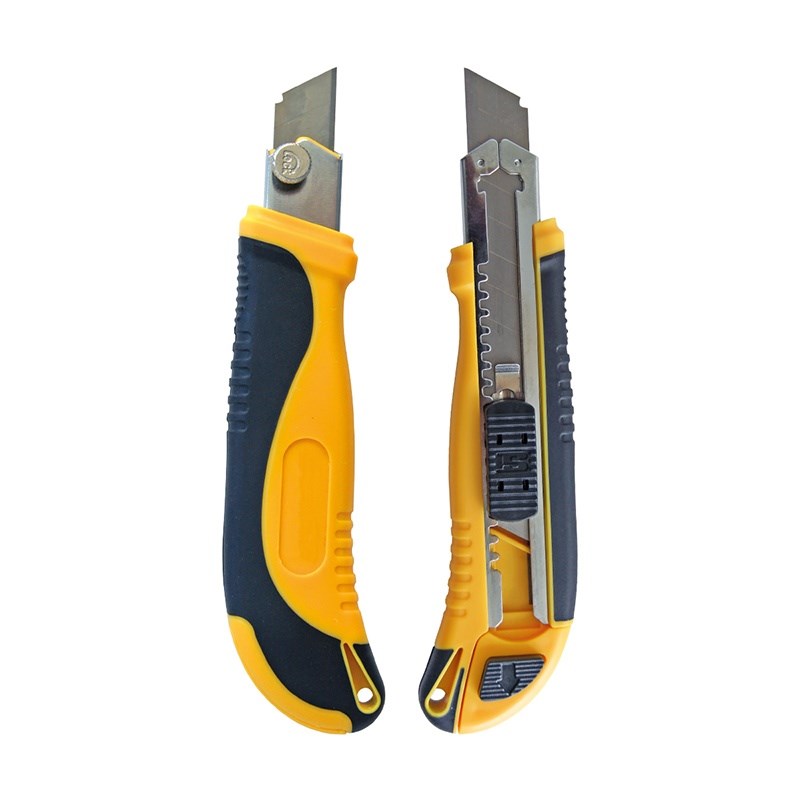 Предназначен для резки бумаги, картона, ткани и пластика. Усиленный обрезиненный корпус. Металлическая направляющая. Оснащен отламывающимся сегментированным лезвием. Усиленный обрезиненный корпус.