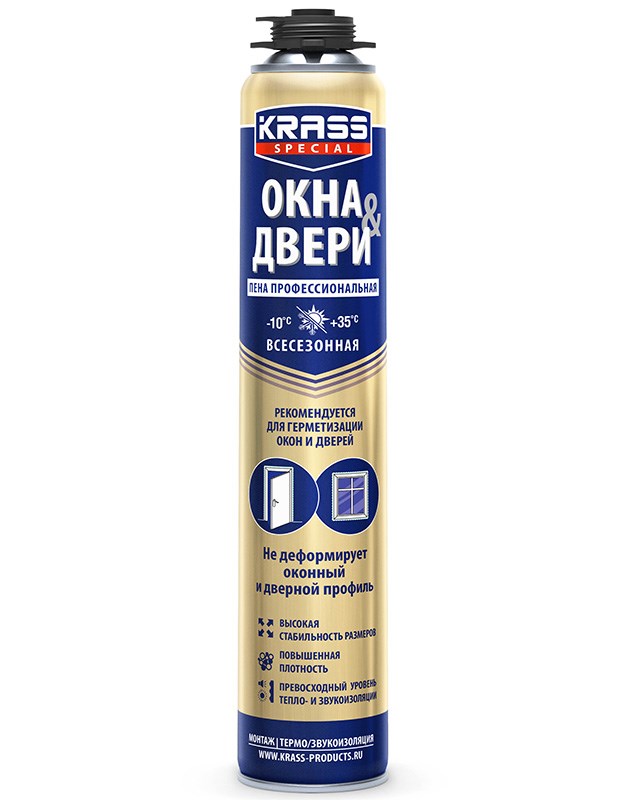 KRASS Special Пена монтажная для окон и дверей пистолетная Всесезонная (0,75л)