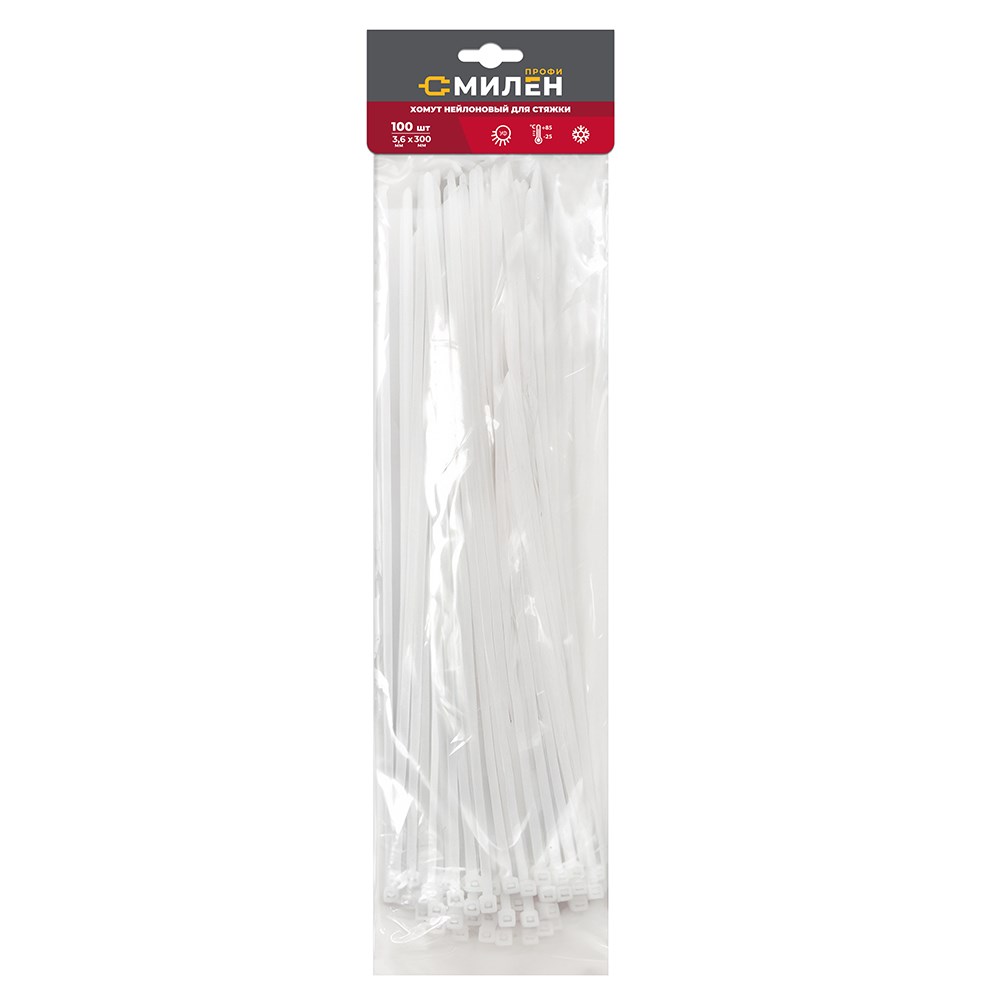 МИЛЕН Хомут-стяжка для кабеля 3,6х300мм нейлон белый (уп.100шт)