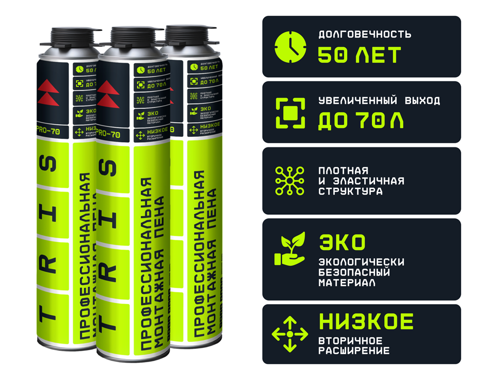 TRIS "PRO-70" Профессиональная монтажная пена (1000мл)
